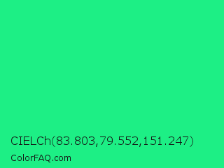 CIELCh 83.803,79.552,151.247 Color is a normal green color and the nearest color is Spring Green #00ff7f. Hex code #1def85 and RGB value is rgb(29,239,133). In RGB color space, this color is composed of 11% red, 94% green, 52% blue, In CMYK color space, this color is composed of 88% cyan, 0% magenta, 44% yellow , 6% black , In HSL color space, this color has a hue angle of 150° , 87% saturation and 53% lightness.