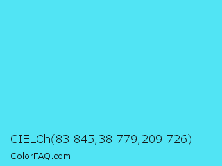 CIELCh 83.845,38.779,209.726 Color is a light cyan color and the nearest color is Turquoise Blue #6cdae7. Hex code #51e4f4 and RGB value is rgb(81,228,244). In RGB color space, this color is composed of 32% red, 89% green, 96% blue, In CMYK color space, this color is composed of 67% cyan, 7% magenta, 0% yellow , 4% black , In HSL color space, this color has a hue angle of 186° , 88% saturation and 64% lightness.