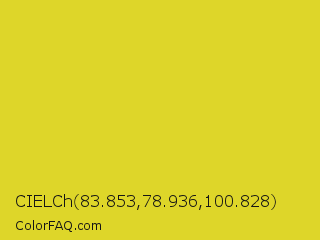 CIELCh 83.853,78.936,100.828 Color is a normal yellow color and the nearest color is Sunflower #e4d422. Hex code #ded629 and RGB value is rgb(222,214,41). In RGB color space, this color is composed of 87% red, 84% green, 16% blue, In CMYK color space, this color is composed of 0% cyan, 4% magenta, 82% yellow , 13% black , In HSL color space, this color has a hue angle of 57° , 73% saturation and 52% lightness.