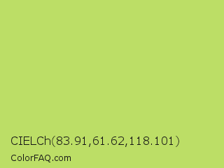 CIELCh 83.91,61.62,118.101 Color is a light lime color and the nearest color is June Bud #bdda57. Hex code #bcde66 and RGB value is rgb(188,222,102). In RGB color space, this color is composed of 74% red, 87% green, 40% blue, In CMYK color space, this color is composed of 15% cyan, 0% magenta, 54% yellow , 13% black , In HSL color space, this color has a hue angle of 77° , 65% saturation and 64% lightness.