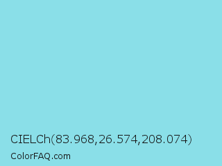 CIELCh 83.968,26.574,208.074 Color is a light cyan color and the nearest color is Medium Sky Blue #80daeb. Hex code #8adfe8 and RGB value is rgb(138,223,232). In RGB color space, this color is composed of 54% red, 87% green, 91% blue, In CMYK color space, this color is composed of 41% cyan, 4% magenta, 0% yellow , 9% black , In HSL color space, this color has a hue angle of 186° , 67% saturation and 73% lightness.