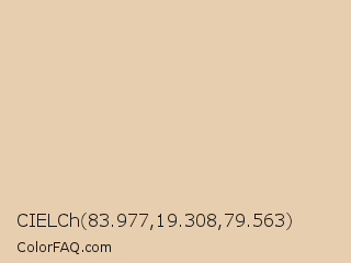 CIELCh 83.977,19.308,79.563 Color is a light orange color and the nearest color is Pancho #edcdab. Hex code #e6ceae and RGB value is rgb(230,206,174). In RGB color space, this color is composed of 90% red, 81% green, 68% blue, In CMYK color space, this color is composed of 0% cyan, 10% magenta, 24% yellow , 10% black , In HSL color space, this color has a hue angle of 34° , 53% saturation and 79% lightness.