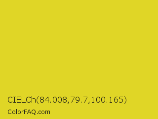 CIELCh 84.008,79.7,100.165 Color is a normal yellow color and the nearest color is Sunflower #e4d422. Hex code #e0d626 and RGB value is rgb(224,214,38). In RGB color space, this color is composed of 88% red, 84% green, 15% blue, In CMYK color space, this color is composed of 0% cyan, 4% magenta, 83% yellow , 12% black , In HSL color space, this color has a hue angle of 57° , 75% saturation and 51% lightness.