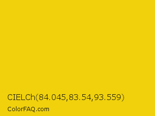 CIELCh 84.045,83.54,93.559 Color is a normal yellow color and the nearest color is Safety Yellow #eed202. Hex code #f0d10c and RGB value is rgb(240,209,12). In RGB color space, this color is composed of 94% red, 82% green, 5% blue, In CMYK color space, this color is composed of 0% cyan, 13% magenta, 95% yellow , 6% black , In HSL color space, this color has a hue angle of 52° , 90% saturation and 49% lightness.