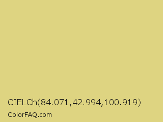 CIELCh 84.071,42.994,100.919 Color is a light yellow color and the nearest color is Putty #e7cd8c. Hex code #ded481 and RGB value is rgb(222,212,129). In RGB color space, this color is composed of 87% red, 83% green, 51% blue, In CMYK color space, this color is composed of 0% cyan, 5% magenta, 42% yellow , 13% black , In HSL color space, this color has a hue angle of 54° , 58% saturation and 69% lightness.