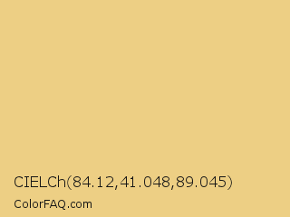 CIELCh 84.12,41.048,89.045 Color is a light orange color and the nearest color is Putty #e7cd8c. Hex code #edcf84 and RGB value is rgb(237,207,132). In RGB color space, this color is composed of 93% red, 81% green, 52% blue, In CMYK color space, this color is composed of 0% cyan, 13% magenta, 44% yellow , 7% black , In HSL color space, this color has a hue angle of 43° , 74% saturation and 72% lightness.