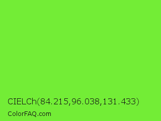 CIELCh 84.215,96.038,131.433 Color is a normal green color and the nearest color is Spring Frost #87ff2a. Hex code #73ed36 and RGB value is rgb(115,237,54). In RGB color space, this color is composed of 45% red, 93% green, 21% blue, In CMYK color space, this color is composed of 51% cyan, 0% magenta, 77% yellow , 7% black , In HSL color space, this color has a hue angle of 100° , 84% saturation and 57% lightness.