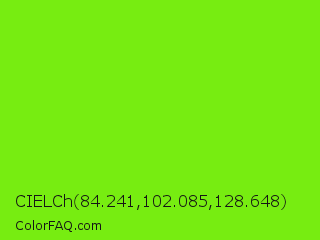 CIELCh 84.241,102.085,128.648 Color is a normal green color and the nearest color is Lawn Green #7cfc00. Hex code #77ed11 and RGB value is rgb(119,237,17). In RGB color space, this color is composed of 47% red, 93% green, 7% blue, In CMYK color space, this color is composed of 50% cyan, 0% magenta, 93% yellow , 7% black , In HSL color space, this color has a hue angle of 92° , 87% saturation and 50% lightness.