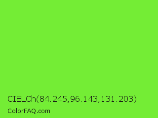 CIELCh 84.245,96.143,131.203 Color is a normal green color and the nearest color is Spring Frost #87ff2a. Hex code #74ed35 and RGB value is rgb(116,237,53). In RGB color space, this color is composed of 45% red, 93% green, 21% blue, In CMYK color space, this color is composed of 51% cyan, 0% magenta, 78% yellow , 7% black , In HSL color space, this color has a hue angle of 99° , 84% saturation and 57% lightness.