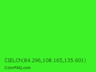 CIELCh 84.296,108.165,135.601 Color is a normal green color and the nearest color is Neon Green #39ff14. Hex code #3df226 and RGB value is rgb(61,242,38). In RGB color space, this color is composed of 24% red, 95% green, 15% blue, In CMYK color space, this color is composed of 75% cyan, 0% magenta, 84% yellow , 5% black , In HSL color space, this color has a hue angle of 113° , 89% saturation and 55% lightness.