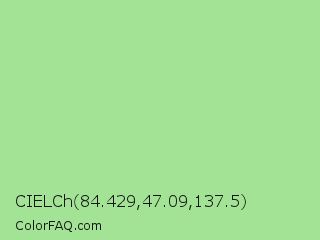 CIELCh 84.429,47.09,137.5 Color is a light green color and the nearest color is Granny Smith Apple Crayola #9de093. Hex code #a3e395 and RGB value is rgb(163,227,149). In RGB color space, this color is composed of 64% red, 89% green, 58% blue, In CMYK color space, this color is composed of 28% cyan, 0% magenta, 34% yellow , 11% black , In HSL color space, this color has a hue angle of 109° , 58% saturation and 74% lightness.