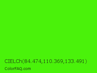 CIELCh 84.474,110.369,133.491 Color is a normal green color and the nearest color is Chlorophyll Green #4aff00. Hex code #4af20a and RGB value is rgb(74,242,10). In RGB color space, this color is composed of 29% red, 95% green, 4% blue, In CMYK color space, this color is composed of 69% cyan, 0% magenta, 96% yellow , 5% black , In HSL color space, this color has a hue angle of 103° , 92% saturation and 49% lightness.