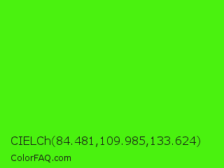 CIELCh 84.481,109.985,133.624 Color is a normal green color and the nearest color is Chlorophyll Green #4aff00. Hex code #4af20f and RGB value is rgb(74,242,15). In RGB color space, this color is composed of 29% red, 95% green, 6% blue, In CMYK color space, this color is composed of 69% cyan, 0% magenta, 94% yellow , 5% black , In HSL color space, this color has a hue angle of 104° , 90% saturation and 50% lightness.
