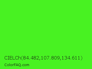 CIELCh 84.482,107.809,134.611 Color is a normal green color and the nearest color is Neon Green #39ff14. Hex code #48f222 and RGB value is rgb(72,242,34). In RGB color space, this color is composed of 28% red, 95% green, 13% blue, In CMYK color space, this color is composed of 70% cyan, 0% magenta, 86% yellow , 5% black , In HSL color space, this color has a hue angle of 109° , 89% saturation and 54% lightness.