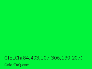 CIELCh 84.493,107.306,139.207 Color is a normal green color and the nearest color is Malachite #0bda51. Hex code #00f43b and RGB value is rgb(0,244,59). In RGB color space, this color is composed of 0% red, 96% green, 23% blue, In CMYK color space, this color is composed of 100% cyan, 0% magenta, 76% yellow , 4% black , In HSL color space, this color has a hue angle of 135° , 100% saturation and 48% lightness.