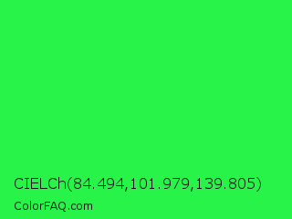 CIELCh 84.494,101.979,139.805 Color is a normal green color and the nearest color is Malachite #0bda51. Hex code #28f348 and RGB value is rgb(40,243,72). In RGB color space, this color is composed of 16% red, 95% green, 28% blue, In CMYK color space, this color is composed of 84% cyan, 0% magenta, 70% yellow , 5% black , In HSL color space, this color has a hue angle of 129° , 89% saturation and 55% lightness.