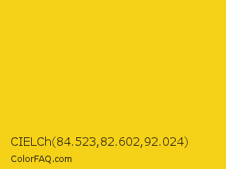 CIELCh 84.523,82.602,92.024 Color is a normal yellow color and the nearest color is Jonquil #f4ca16. Hex code #f5d117 and RGB value is rgb(245,209,23). In RGB color space, this color is composed of 96% red, 82% green, 9% blue, In CMYK color space, this color is composed of 0% cyan, 15% magenta, 91% yellow , 4% black , In HSL color space, this color has a hue angle of 50° , 92% saturation and 53% lightness.