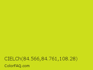 CIELCh 84.566,84.761,108.28 Color is a normal yellow color and the nearest color is Bitter Lemon #cae00d. Hex code #ccde1b and RGB value is rgb(204,222,27). In RGB color space, this color is composed of 80% red, 87% green, 11% blue, In CMYK color space, this color is composed of 8% cyan, 0% magenta, 88% yellow , 13% black , In HSL color space, this color has a hue angle of 66° , 78% saturation and 49% lightness.