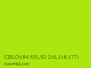 CIELCh 84.631,92.216,118.177 Color is a normal lime color and the nearest color is Inch Worm #b0e313. Hex code #abe60f and RGB value is rgb(171,230,15). In RGB color space, this color is composed of 67% red, 90% green, 6% blue, In CMYK color space, this color is composed of 26% cyan, 0% magenta, 93% yellow , 10% black , In HSL color space, this color has a hue angle of 76° , 88% saturation and 48% lightness.