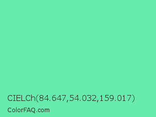 CIELCh 84.647,54.032,159.017 Color is a light green color and the nearest color is Medium Aquamarine #66ddaa. Hex code #67ebad and RGB value is rgb(103,235,173). In RGB color space, this color is composed of 40% red, 92% green, 68% blue, In CMYK color space, this color is composed of 56% cyan, 0% magenta, 26% yellow , 8% black , In HSL color space, this color has a hue angle of 152° , 77% saturation and 66% lightness.