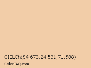 CIELCh 84.673,24.531,71.588 Color is a light orange color and the nearest color is Pancho #edcdab. Hex code #f2cda8 and RGB value is rgb(242,205,168). In RGB color space, this color is composed of 95% red, 80% green, 66% blue, In CMYK color space, this color is composed of 0% cyan, 15% magenta, 31% yellow , 5% black , In HSL color space, this color has a hue angle of 30° , 74% saturation and 80% lightness.