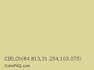CIELCh 84.813,31.254,103.075 Color is a light yellow color and the nearest color is Zombie #e4d69b. Hex code #dcd69a and RGB value is rgb(220,214,154). In RGB color space, this color is composed of 86% red, 84% green, 60% blue, In CMYK color space, this color is composed of 0% cyan, 3% magenta, 30% yellow , 14% black , In HSL color space, this color has a hue angle of 55° , 49% saturation and 73% lightness.