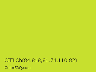 CIELCh 84.818,81.74,110.82 Color is a normal yellow color and the nearest color is Pear #d1e231. Hex code #c7e02e and RGB value is rgb(199,224,46). In RGB color space, this color is composed of 78% red, 88% green, 18% blue, In CMYK color space, this color is composed of 11% cyan, 0% magenta, 79% yellow , 12% black , In HSL color space, this color has a hue angle of 68° , 74% saturation and 53% lightness.