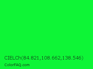 CIELCh 84.821,108.662,138.546 Color is a normal green color and the nearest color is Malachite #0bda51. Hex code #0df536 and RGB value is rgb(13,245,54). In RGB color space, this color is composed of 5% red, 96% green, 21% blue, In CMYK color space, this color is composed of 95% cyan, 0% magenta, 78% yellow , 4% black , In HSL color space, this color has a hue angle of 131° , 92% saturation and 51% lightness.