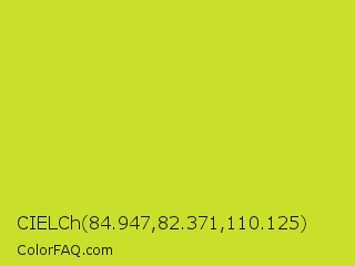 CIELCh 84.947,82.371,110.125 Color is a normal yellow color and the nearest color is Pear #d1e231. Hex code #c9e02b and RGB value is rgb(201,224,43). In RGB color space, this color is composed of 79% red, 88% green, 17% blue, In CMYK color space, this color is composed of 10% cyan, 0% magenta, 81% yellow , 12% black , In HSL color space, this color has a hue angle of 68° , 74% saturation and 52% lightness.