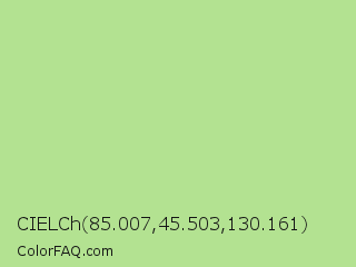 CIELCh 85.007,45.503,130.161 Color is a light green color and the nearest color is Granny Smith Apple #a8e4a0. Hex code #b3e291 and RGB value is rgb(179,226,145). In RGB color space, this color is composed of 70% red, 89% green, 57% blue, In CMYK color space, this color is composed of 21% cyan, 0% magenta, 36% yellow , 11% black , In HSL color space, this color has a hue angle of 95° , 58% saturation and 73% lightness.