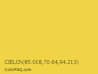 CIELCh 85.018,70.64,94.213 Color is a light yellow color and the nearest color is Sandstorm #ecd540. Hex code #f0d445 and RGB value is rgb(240,212,69). In RGB color space, this color is composed of 94% red, 83% green, 27% blue, In CMYK color space, this color is composed of 0% cyan, 12% magenta, 71% yellow , 6% black , In HSL color space, this color has a hue angle of 50° , 85% saturation and 61% lightness.