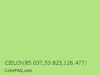 CIELCh 85.037,53.823,126.477 Color is a light green color and the nearest color is Yellow Green #c5e17a. Hex code #b3e380 and RGB value is rgb(179,227,128). In RGB color space, this color is composed of 70% red, 89% green, 50% blue, In CMYK color space, this color is composed of 21% cyan, 0% magenta, 44% yellow , 11% black , In HSL color space, this color has a hue angle of 89° , 64% saturation and 70% lightness.