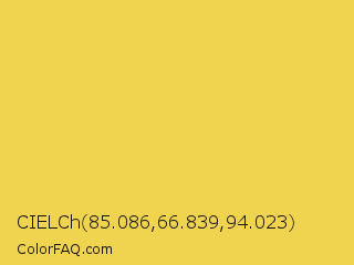 CIELCh 85.086,66.839,94.023 Color is a light yellow color and the nearest color is Minion Yellow #f5e050. Hex code #f0d44f and RGB value is rgb(240,212,79). In RGB color space, this color is composed of 94% red, 83% green, 31% blue, In CMYK color space, this color is composed of 0% cyan, 12% magenta, 67% yellow , 6% black , In HSL color space, this color has a hue angle of 50° , 84% saturation and 63% lightness.