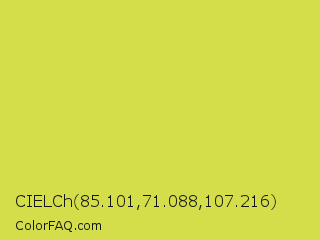 CIELCh 85.101,71.088,107.216 Color is a normal yellow color and the nearest color is Wattle #dcd747. Hex code #d4dd4a and RGB value is rgb(212,221,74). In RGB color space, this color is composed of 83% red, 87% green, 29% blue, In CMYK color space, this color is composed of 4% cyan, 0% magenta, 67% yellow , 13% black , In HSL color space, this color has a hue angle of 64° , 68% saturation and 58% lightness.