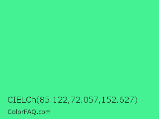 CIELCh 85.122,72.057,152.627 Color is a light green color and the nearest color is Eucalyptus #44d7a8. Hex code #44f193 and RGB value is rgb(68,241,147). In RGB color space, this color is composed of 27% red, 95% green, 58% blue, In CMYK color space, this color is composed of 72% cyan, 0% magenta, 39% yellow , 5% black , In HSL color space, this color has a hue angle of 147° , 86% saturation and 61% lightness.
