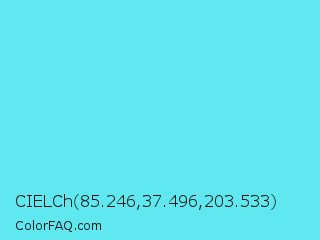 CIELCh 85.246,37.496,203.533 Color is a light cyan color and the nearest color is Turquoise Blue #6cdae7. Hex code #60e8f0 and RGB value is rgb(96,232,240). In RGB color space, this color is composed of 38% red, 91% green, 94% blue, In CMYK color space, this color is composed of 60% cyan, 3% magenta, 0% yellow , 6% black , In HSL color space, this color has a hue angle of 183° , 83% saturation and 66% lightness.