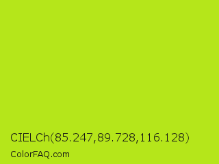 CIELCh 85.247,89.728,116.128 Color is a normal lime color and the nearest color is Inch Worm #b0e313. Hex code #b5e61a and RGB value is rgb(181,230,26). In RGB color space, this color is composed of 71% red, 90% green, 10% blue, In CMYK color space, this color is composed of 21% cyan, 0% magenta, 89% yellow , 10% black , In HSL color space, this color has a hue angle of 74° , 80% saturation and 50% lightness.
