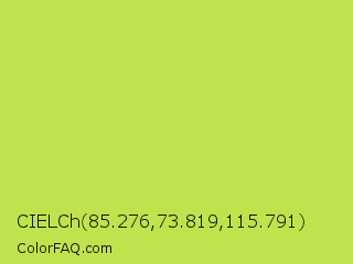 CIELCh 85.276,73.819,115.791 Color is a normal lime color and the nearest color is June Bud #bdda57. Hex code #bfe34d and RGB value is rgb(191,227,77). In RGB color space, this color is composed of 75% red, 89% green, 30% blue, In CMYK color space, this color is composed of 16% cyan, 0% magenta, 66% yellow , 11% black , In HSL color space, this color has a hue angle of 74° , 73% saturation and 60% lightness.