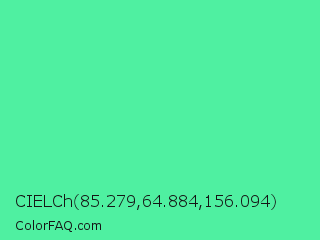CIELCh 85.279,64.884,156.094 Color is a light green color and the nearest color is Eucalyptus #44d7a8. Hex code #4ff0a1 and RGB value is rgb(79,240,161). In RGB color space, this color is composed of 31% red, 94% green, 63% blue, In CMYK color space, this color is composed of 67% cyan, 0% magenta, 33% yellow , 6% black , In HSL color space, this color has a hue angle of 151° , 84% saturation and 63% lightness.