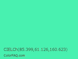 CIELCh 85.399,61.126,160.623 Color is a light green color and the nearest color is Eucalyptus #44d7a8. Hex code #4af0ad and RGB value is rgb(74,240,173). In RGB color space, this color is composed of 29% red, 94% green, 68% blue, In CMYK color space, this color is composed of 69% cyan, 0% magenta, 28% yellow , 6% black , In HSL color space, this color has a hue angle of 156° , 85% saturation and 62% lightness.