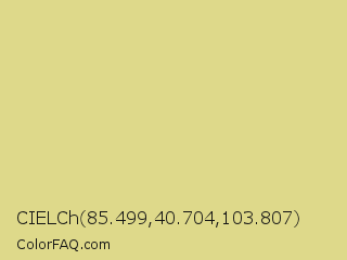 CIELCh 85.499,40.704,103.807 Color is a light yellow color and the nearest color is Putty #e7cd8c. Hex code #ded98a and RGB value is rgb(222,217,138). In RGB color space, this color is composed of 87% red, 85% green, 54% blue, In CMYK color space, this color is composed of 0% cyan, 2% magenta, 38% yellow , 13% black , In HSL color space, this color has a hue angle of 56° , 56% saturation and 71% lightness.