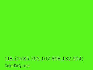 CIELCh 85.765,107.898,132.994 Color is a normal green color and the nearest color is Bright Green #66ff00. Hex code #59f51d and RGB value is rgb(89,245,29). In RGB color space, this color is composed of 35% red, 96% green, 11% blue, In CMYK color space, this color is composed of 64% cyan, 0% magenta, 88% yellow , 4% black , In HSL color space, this color has a hue angle of 103° , 92% saturation and 54% lightness.
