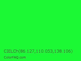 CIELCh 86.127,110.053,138.106 Color is a normal green color and the nearest color is Malachite #0bda51. Hex code #1bf935 and RGB value is rgb(27,249,53). In RGB color space, this color is composed of 11% red, 98% green, 21% blue, In CMYK color space, this color is composed of 89% cyan, 0% magenta, 79% yellow , 2% black , In HSL color space, this color has a hue angle of 127° , 95% saturation and 54% lightness.