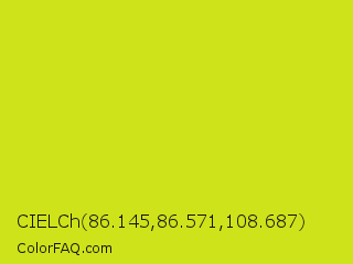 CIELCh 86.145,86.571,108.687 Color is a normal yellow color and the nearest color is Las Palmas #c6e610. Hex code #cfe31a and RGB value is rgb(207,227,26). In RGB color space, this color is composed of 81% red, 89% green, 10% blue, In CMYK color space, this color is composed of 9% cyan, 0% magenta, 89% yellow , 11% black , In HSL color space, this color has a hue angle of 66° , 79% saturation and 50% lightness.