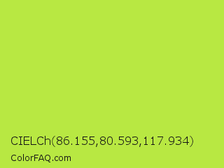 CIELCh 86.155,80.593,117.934 Color is a normal lime color and the nearest color is Conifer #acdd4d. Hex code #b8e842 and RGB value is rgb(184,232,66). In RGB color space, this color is composed of 72% red, 91% green, 26% blue, In CMYK color space, this color is composed of 21% cyan, 0% magenta, 72% yellow , 9% black , In HSL color space, this color has a hue angle of 77° , 78% saturation and 58% lightness.