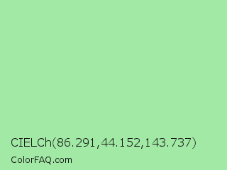 CIELCh 86.291,44.152,143.737 Color is a light green color and the nearest color is Granny Smith Apple #a8e4a0. Hex code #a1e9a5 and RGB value is rgb(161,233,165). In RGB color space, this color is composed of 63% red, 91% green, 65% blue, In CMYK color space, this color is composed of 31% cyan, 0% magenta, 29% yellow , 9% black , In HSL color space, this color has a hue angle of 123° , 62% saturation and 77% lightness.
