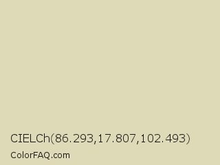CIELCh 86.293,17.807,102.493 Color is a light yellow color and the nearest color is Grain Brown #e4d5b7. Hex code #ded9b7 and RGB value is rgb(222,217,183). In RGB color space, this color is composed of 87% red, 85% green, 72% blue, In CMYK color space, this color is composed of 0% cyan, 2% magenta, 18% yellow , 13% black , In HSL color space, this color has a hue angle of 52° , 37% saturation and 79% lightness.