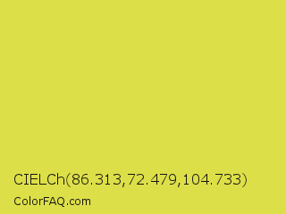 CIELCh 86.313,72.479,104.733 Color is a normal yellow color and the nearest color is Wattle #dcd747. Hex code #dddf48 and RGB value is rgb(221,223,72). In RGB color space, this color is composed of 87% red, 87% green, 28% blue, In CMYK color space, this color is composed of 1% cyan, 0% magenta, 68% yellow , 13% black , In HSL color space, this color has a hue angle of 61° , 70% saturation and 58% lightness.
