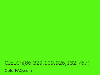 CIELCh 86.329,109.926,132.767 Color is a normal green color and the nearest color is Bright Green #66ff00. Hex code #58f714 and RGB value is rgb(88,247,20). In RGB color space, this color is composed of 35% red, 97% green, 8% blue, In CMYK color space, this color is composed of 64% cyan, 0% magenta, 92% yellow , 3% black , In HSL color space, this color has a hue angle of 102° , 93% saturation and 52% lightness.