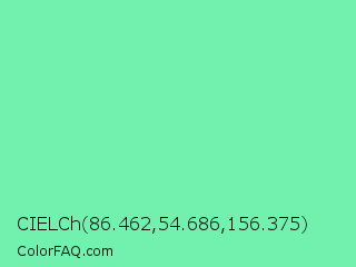 CIELCh 86.462,54.686,156.375 Color is a light green color and the nearest color is Medium Aquamarine #66ddaa. Hex code #72f0ad and RGB value is rgb(114,240,173). In RGB color space, this color is composed of 45% red, 94% green, 68% blue, In CMYK color space, this color is composed of 53% cyan, 0% magenta, 28% yellow , 6% black , In HSL color space, this color has a hue angle of 148° , 81% saturation and 69% lightness.